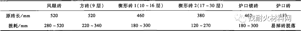 1.2轉(zhuǎn)爐耐火磚的損耗情況